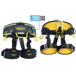 Arnés para trabajos verticales y verticales. Las perneras semirrígidas y el cinturón aseguran una distribución óptima de la presión donde el cuerpo está en contacto con el arnés. El cinturón y las perneras están forrados con espuma transpirable, lo que aumenta la comodidad y reduce la transpiración. Los dos lazos de sujeción laterales del cinturón están articulados para minimizar los obstáculos. Dos hebillas de apertura rápida de doble acción (una por pernera) permiten que el arnés se ajuste fácilmente incluso con calzado engorroso. La parte trasera del cinturón contiene un área para permitir el marcado personal, como el nombre de su empresa, además de un código QR que permite generar un identificador verdadero (su nombre e identificación única). Se colocan 3 presillas para equipo grandes y preformadas alrededor del cinturón para acomodar fácilmente todo el equipo. Se pueden usar 4 mini porta materiales para sujetar portaherramientas extensibles “AIR-LEASH” o 2 bolsas de herramientas “TOOL-BUCKET”.