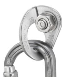 – el ancho del orificio permite la instalación de dos mosquetones al mismo tiempo