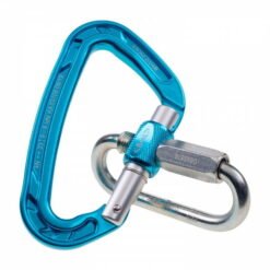 Características que hacen que este mosquetón sea muy eficaz durante las maniobras repetidas, especialmente en los puntos de anclaje. Además, se puede desbloquear con un enlace en caso de bloqueo.