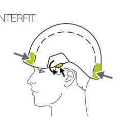 Sistema FLIP&FIT que permite una posición baja del contorno de cabeza para garantizar una excelente sujeción del casco. El sistema es plegable en el interior del casco para facilitar el almacenamiento y el transporte.
