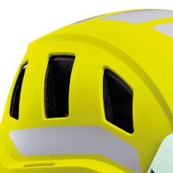 El casco STRATO VENTHI-VIZ ofrece un uso confortable, gracias a los sistemas CENTERFIT y FLIP FIT que garantizan una excelente sujeción del casco en la cabeza. Con un barboquejo de resistencia modificable, es adecuado tanto para los trabajos en altura como para los trabajos en el suelo. Dispone de orificios de ventilación para airear el casco. La integración óptima de una linterna frontal Petzl, de una pantalla de protección, de orejeras y de múltiples accesorios lo hace un casco completamente modular, que responde a las necesidades adicionales de los profesionales. La versión de alta visibilidad está provista de una carcasa exterior de color fluorescente con clips fosforescentes y bandas reflectantes, para una visibilidad óptima del trabajador, de día y de noche.