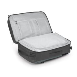 El compartimiento principal con cremallera se abre de forma plana y los divisores internos con cremallera crean áreas separadas para tu ropa, documentos y artículos electrónicos. El gran compartimiento externo almacena los artículos de aseo y el bolsillo en el panel delantero es el lugar ideal para los materiales de lectura y notebooks. Hecho de tela impermeable para proteger del mal clima.